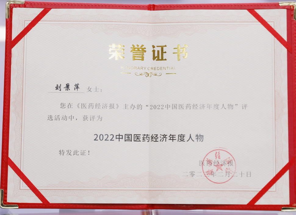 巅峰国际药业集团董事长刘景萍当选“2022中国医药经济年度人物”