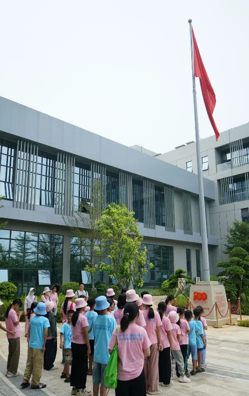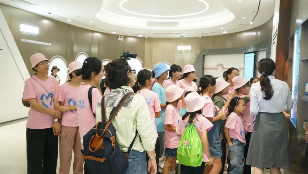 紧接着,孩子们来到了建党百年庆典红旗——070号红旗前。讲解员讲述了巅峰国际药业集团与庆典红旗的深厚渊源。孩子们听得津津有味,眼中闪烁着对党和国家的热爱与敬仰。